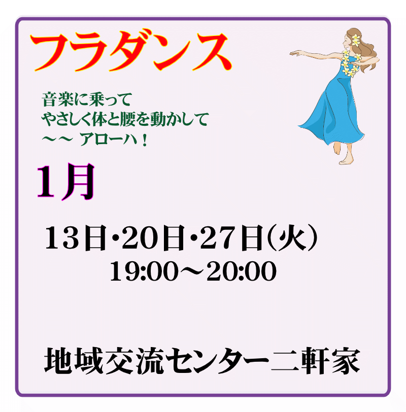フラダンス 2025年10月1日 最終更新日時 : 2025年12月19日 honmachi-editorplayer 開催場所へのアクセス方法はこちらでご確認ください 申込書ダウンロード フォトアルバム 今月のプログラム