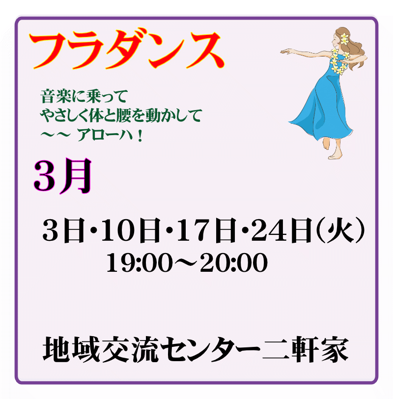 フラダンス 2025年10月1日 最終更新日時 : 2025年11月30日 honmachi-editorplayer 開催場所へのアクセス方法はこちらでご確認ください 申込書ダウンロード フォトアルバム 今月のプログラム